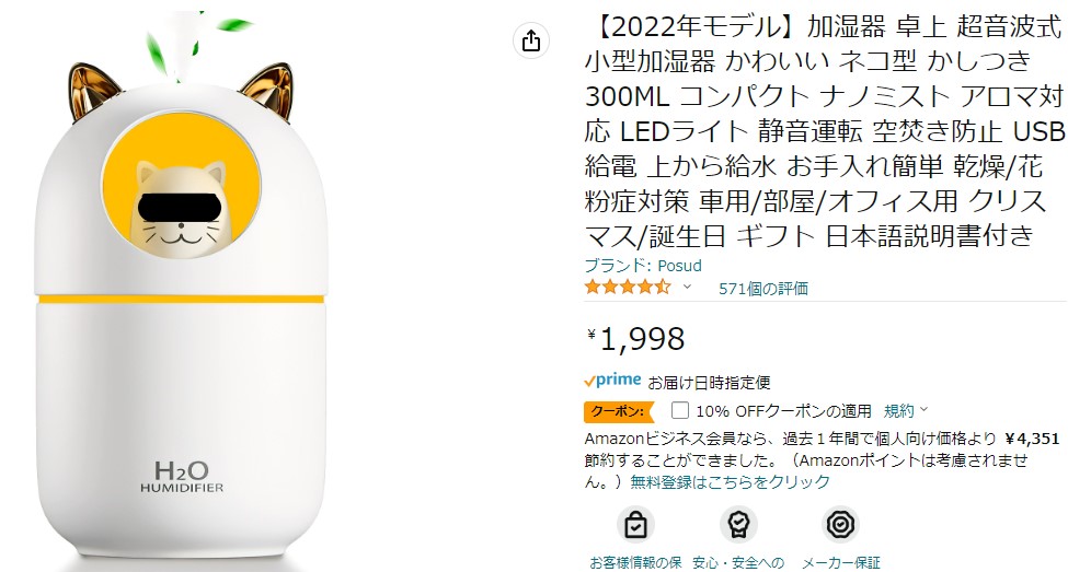 せっかくなのでこの秋に小型の加湿器をお探しの方は、ぜひ弊社のものをお願いいたします。Amazon公式のVineメンバーによる公平なレビューで高評価をいただいております。このメンバーは一切の忖度や不正なくありのまま評価をつけることを約束されているので、信頼度はピカイチです。またこちらについても機会があれば述べたいと思います。