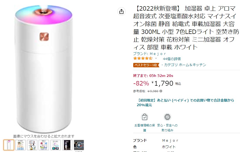 ですが、普段あまり買わない方が加湿器を欲しいと思い、Amazonで検索している時に、この値引き額を見てお得と思って買う方が多いのは事実です。そういう方が買う時間帯が集中し、ベストセラーのマークまで付くと、ますます売れてしまいます。Vineメンバーの方には、この値段の付け方に苦言を呈している方もいらっしゃったので、値引き額に惑わされず、そういうところをしっかりと購入者は参考にしてほしいところです。テクニックといえばそうかもしれませんが、冷静になればお得でも何でもなかった、と購入者がガッカリするようなことは同じ販売者としては止めて欲しいですね。