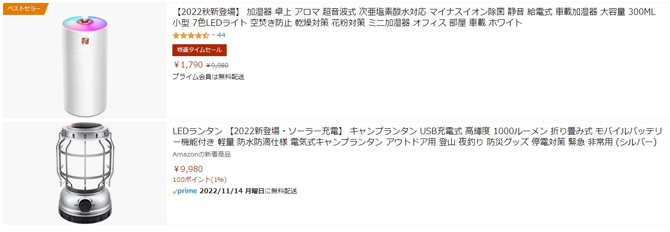 これ、分かります?Amazonでも楽天でも充電式ではないこのタイプの小型加湿器は高いと2,000円、安いと1,000円くらいなのです。参考価格を9,980円と設定し、かつタイムセールに出すことで値引き率が-82%とここだけ見れば非常にお得感があるのですが、他の製品と比べても別にお得でもなんでもありませんね。でも、この商品が加湿器部門だけでなく、ホームアンドキッチンという強いカテゴリー全体でも1位になっているのです。つまりそれだけ買っている方がいるということです。Vineメンバーのレビューもあるのでちゃんとブランドを取っており、カタログも丁寧です。製品自体も詳細を見る限りは特に悪くはなさそうですが、この売り方が問題ですね。
