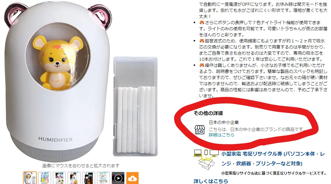 なので購入者も値引き率には惑わされず、しっかりと他の製品と比較したりレビューを参考にしましょう。もう一つ、ちゃんとしたところを見分ける方法があります。カタログ紹介ページに日本の中小企業マークがついていたら、審査を受けてAmazonに認定された信頼できるセラーと思って下さい。こんな感じです。