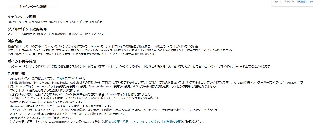 Amazonポイントキャンペーン開催中~2022年12月8日(木)23時59分まで