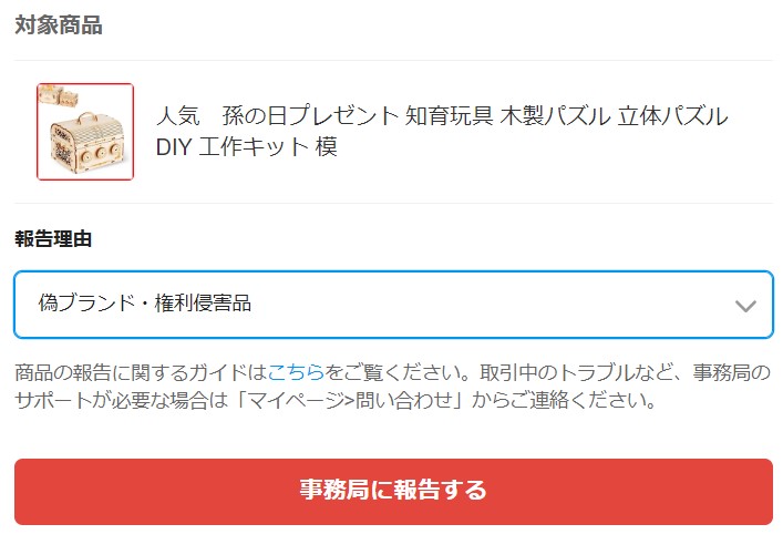 予告したとおり、まずメルカリShopsでの転売屋さんを見つけて違反報告をしました。