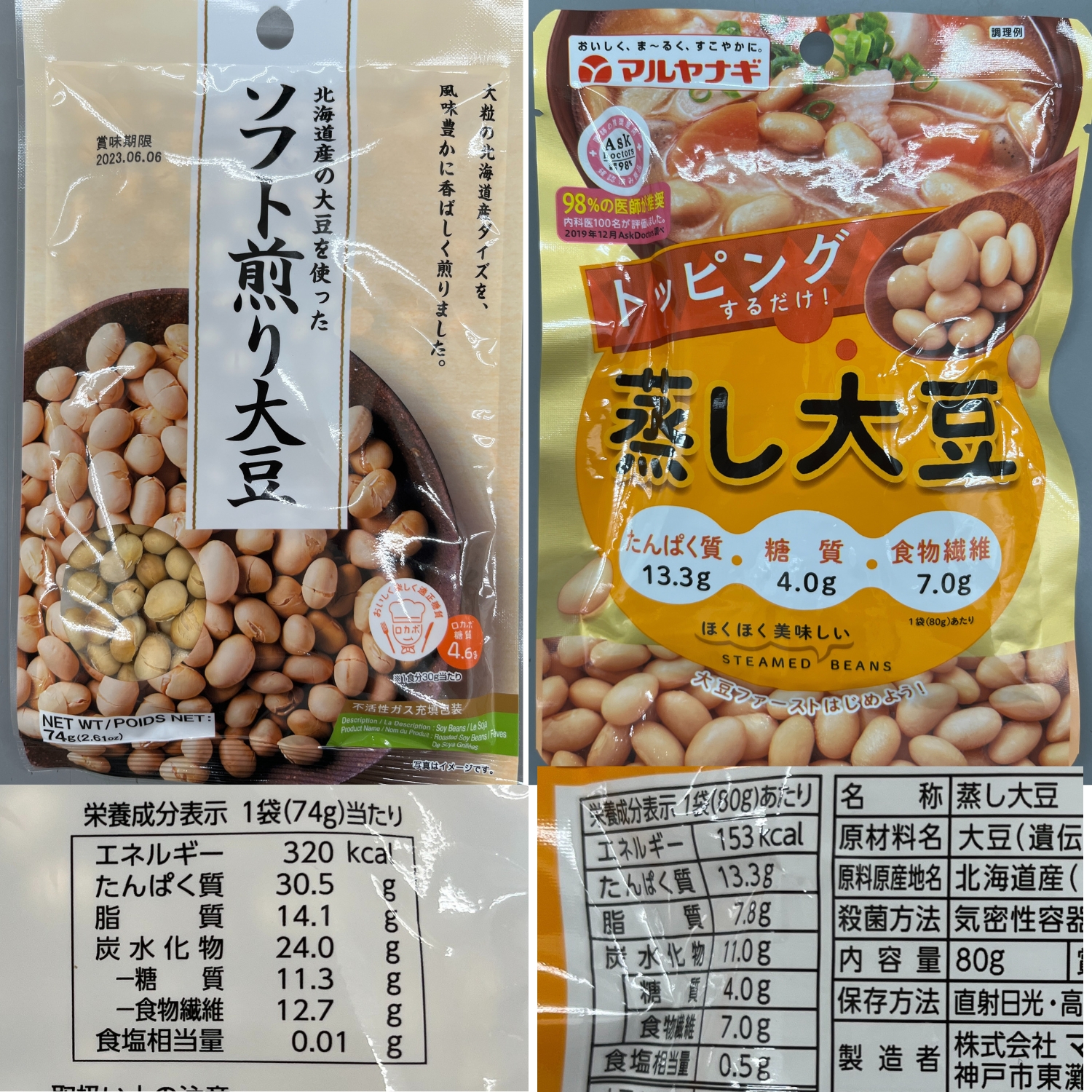 この煎り大豆と蒸し大豆です。
