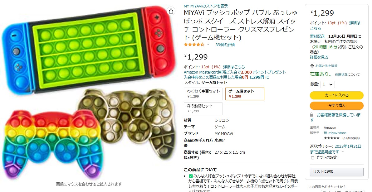 Amazon | MiYAVi プッシュポップ バブル ぷっしゅぽっぷ スクイーズ ストレス解消 スイッチ コントローラー クリスマスプレゼント (ゲーム機セット) | スクイーズ | おもちゃ