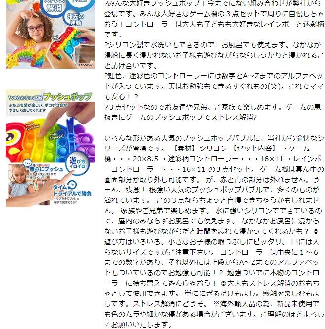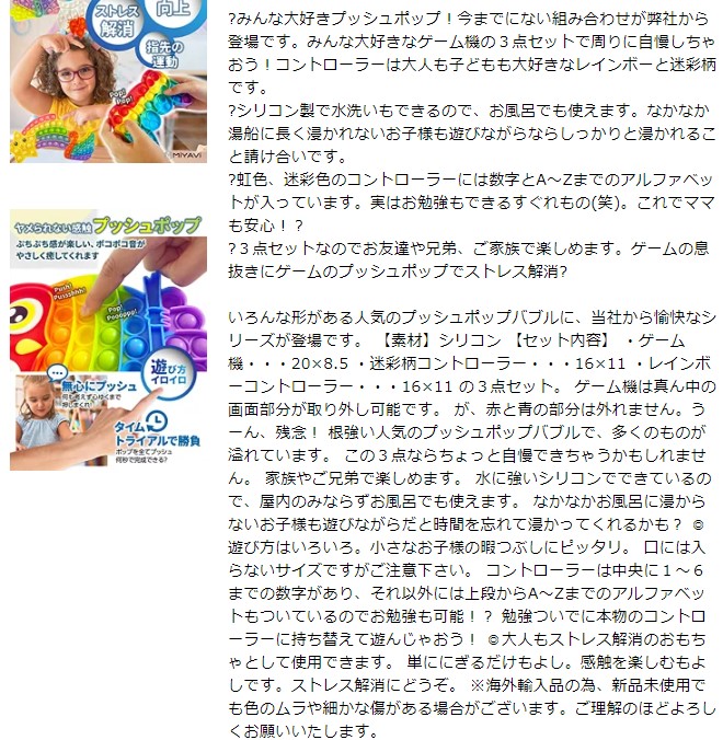 次の画像をご覧ください。楽天で販売されている私のプッシュポップ3点セットです。ちなみにブログ掲載時は1,299円です。