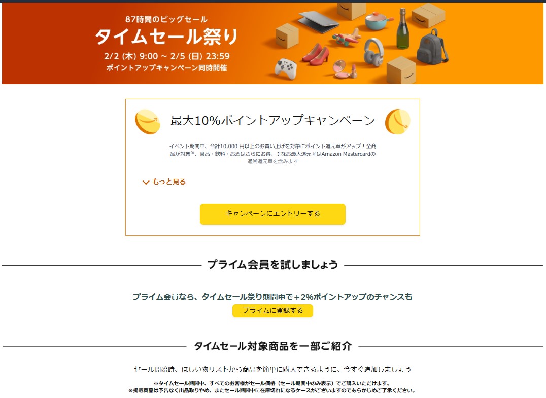 Amazonタイムセールは2/2(木)9:00~2/5(日)23:59まで