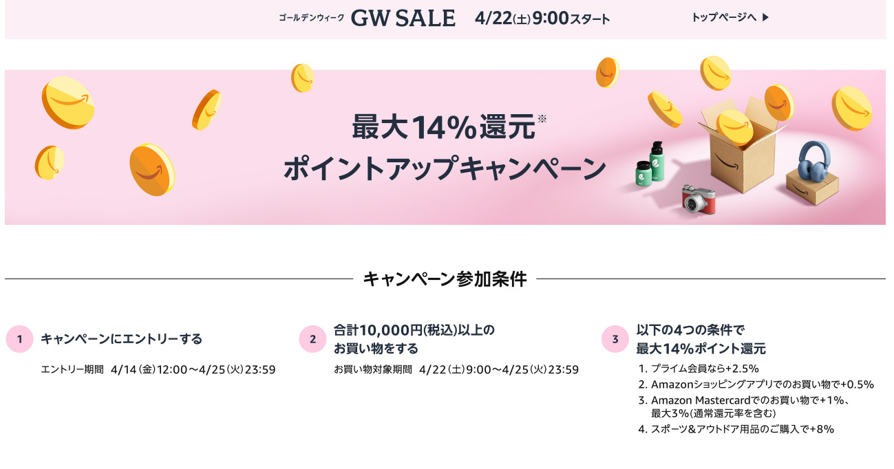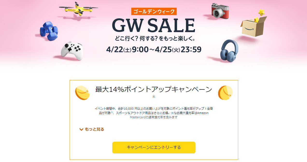 AmazonGWセールは4/22(土)~4/25(火)まで。