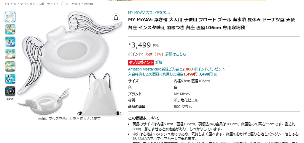 5/17日までに7,000円分くらい買ってダブルポイントの要件を満たしそうな方は、ぜひお子様のためにこの浮き輪をお願いします。