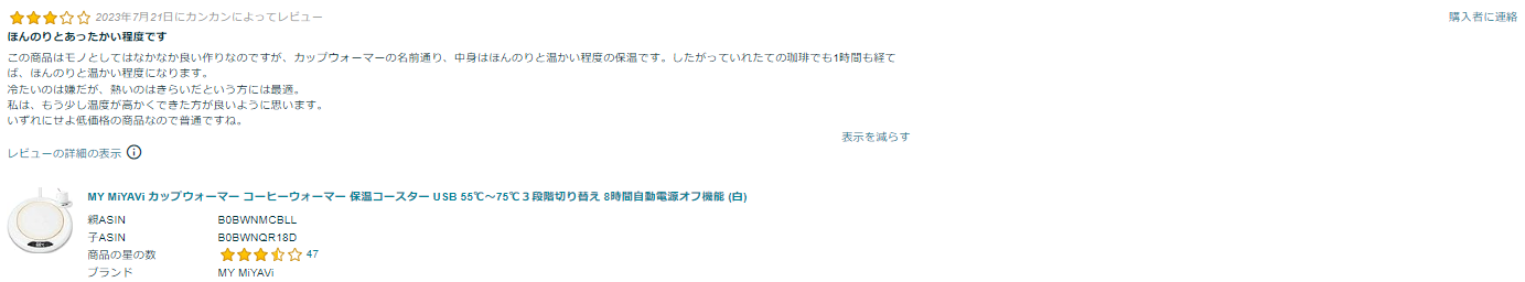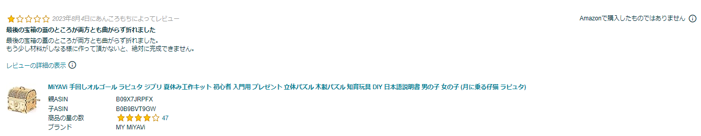 この商品はどんなに悪くても★2でしたが、最近このようなレビューを★1とともに入れられてしまいました。