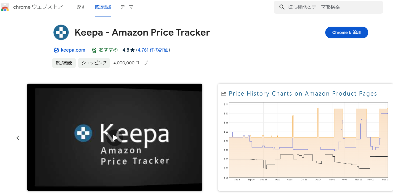 これはAmazonで商品を購入するなら非常に便利です。セール時の底値も分かります。