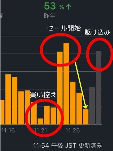 Amazonブラックフライデーセールの推移をお見せします。