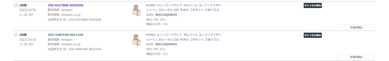 登録してからだいたい2日でVineメンバーは購入できるようになるのですが、2件とも購入後即キャンセルされていたのです。