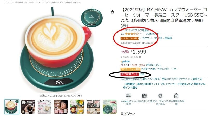 ベストセラー1位はその時々で付いたり付かなかったりしますが、その下にある「過去1か月で100点以上購入されました」と表示されるのは、記録が途切れるまでずっと残ります。300点や500点、1000点、5000点など売れ行きのいい商品は目を引くので、その実績を見て購入される方も増えるでしょうね。