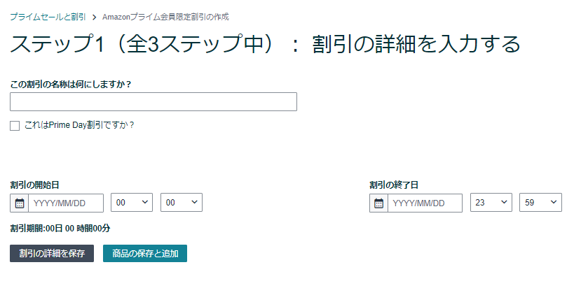 いつもだと、セールの前からセール後までを限定割引するのですが、今回は完全に期間が同期するみたいですね。(Prime Day割引ですか?)にチェックを入れた場合ですけど。