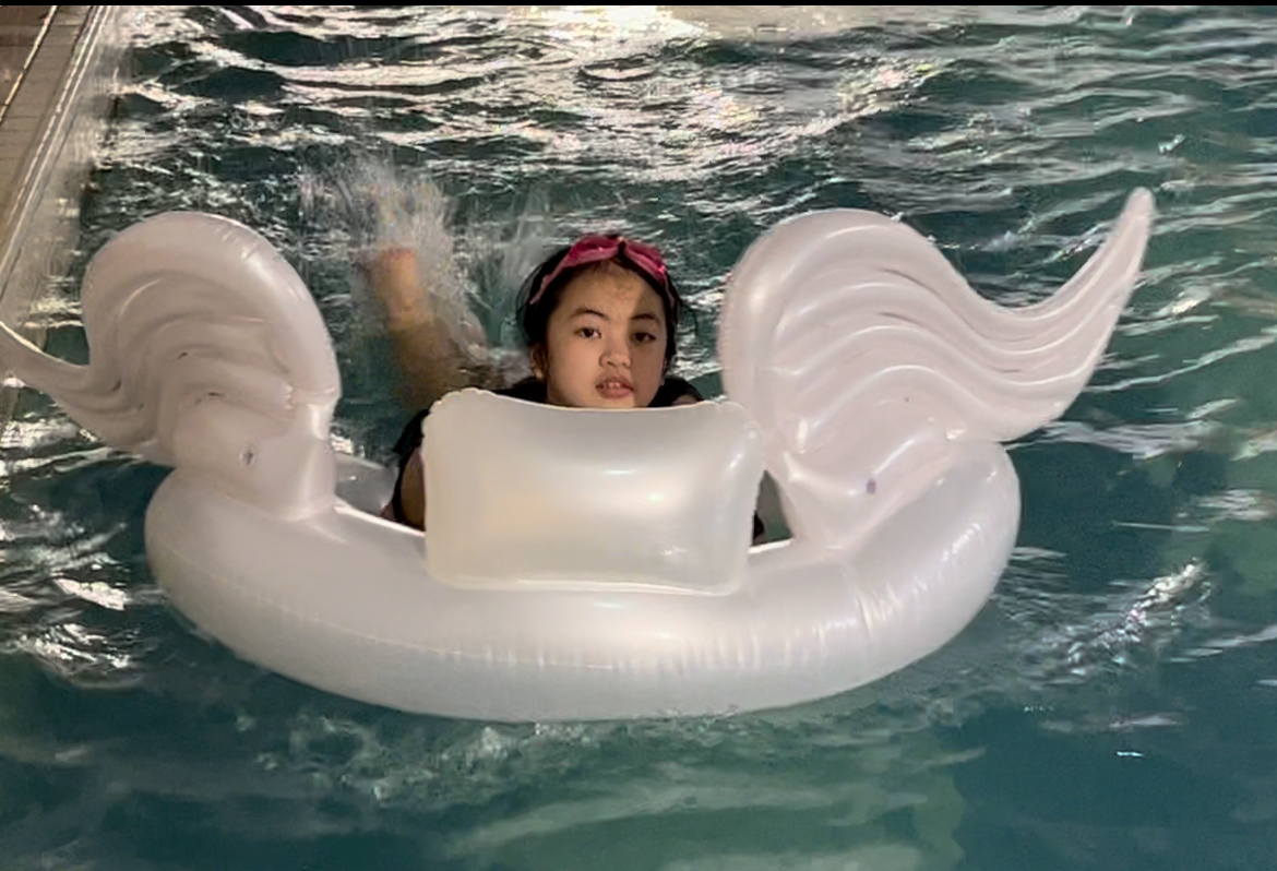 流れるプールなどで小学生が一人で乗っても非常に安定しているので、安心して見ていられます。