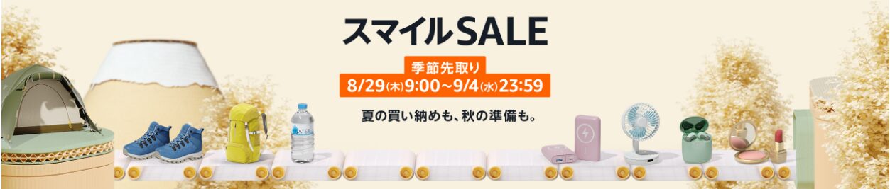 本日8月29日(木)朝9時から9月4日(水)まで、久しぶりにスマイルSALEが開催です。