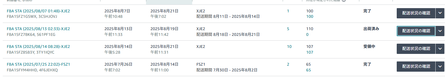 Amazonの納品プランは自動で配送先が決まるので、タイミングが悪いとこのようにFBAに入らずにずっと受領されない状態になります。