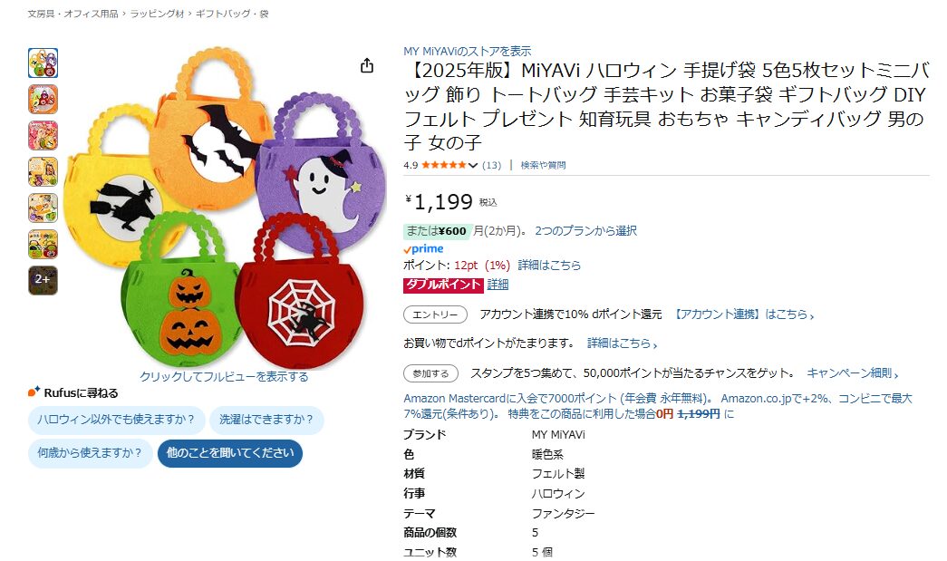 AmazonVineでもなかなかの高評価を得ているハロウィンのフェルト製バッグです。