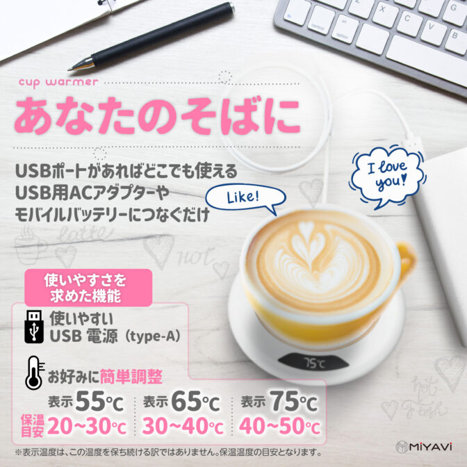 - 【はじめに】この商品はUSBタイプのため、飲み物を熱々の状態にするものではく、ほどほどの温度にキープするためにご利用下さい。カップの材質、室温、量によっては温度が上がりきらない場合がございます。またアダプターの電力不足により効果を発揮できていない場合もございます。下記の点と合わせてご了承いただける場合にお買い求めをお願いいたします。