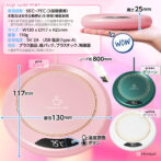 - USBタイプで定格電力20Wのため、一定の温度を保つためには、5V/2.0A以上の出力ができるアダプターとセットでお使い下さい。W数の少ないアダプターでのタコ足接続や、パソコンUSBなどの給電は電力が足りずに保温性能を引き出せない場合があります。モバイルバッテリーも同様です。