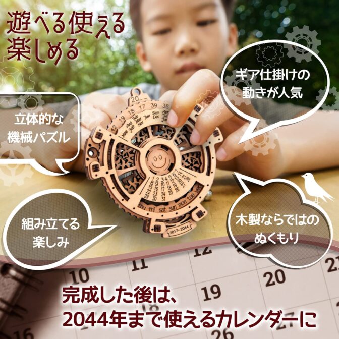 MiYAVi 2044年まで使用できるカレンダー 永久カレンダー プレゼント 初心者 入門用 DIY 模型 立体パズル 木製パズル おもちゃ 3D 男の子 女の子 短時間