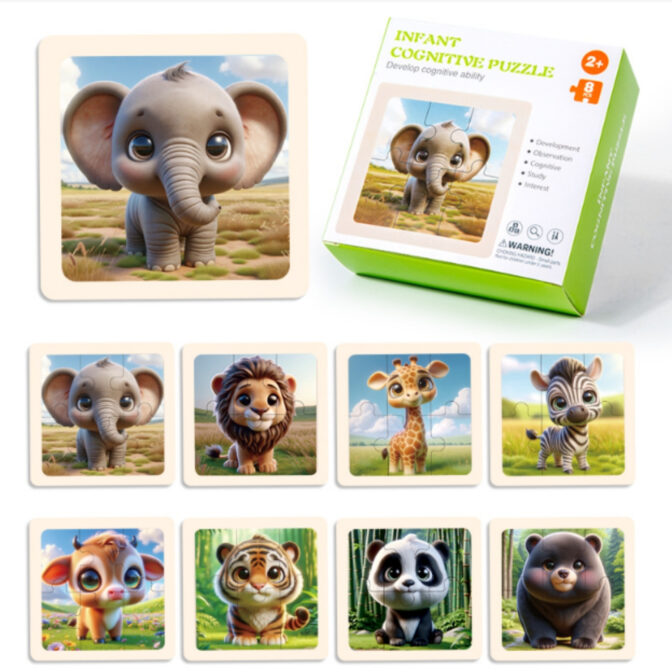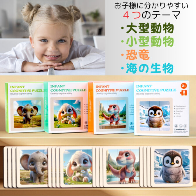 6ピースのパズルで大型動物8枚の板が入っています。こちらのセットは