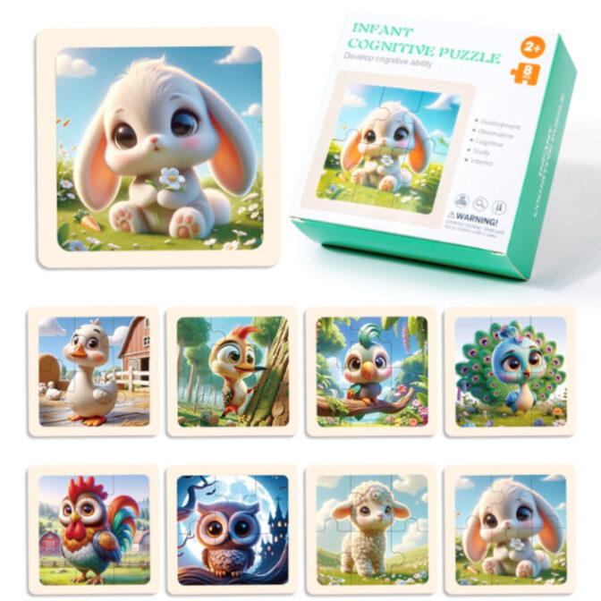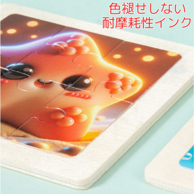 可愛い絵柄が特徴的な木製のジグソーパズルです。